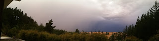 It has been dry and hot for six weeks (in fact, we left Brisbane at 31 degrees, and came back to 31 degrees in Christchurch!), but at last we had some rain. We watched the clouds gather, and then the thunderstorm started over Nelson way.
